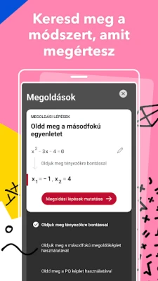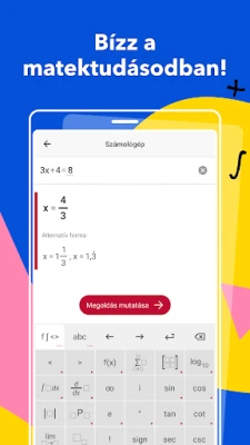 Fedezze fel, hogyan oldhat meg gyorsan és pontosan matematikai problémákat. Ellenőrizze házi feladatait, készüljön fel magabiztosan a vizsgákra a világ legkedveltebb matematikai tanulási segédletével. Bízzon abban az eszközben, amely már millióknak segített a sikerben.